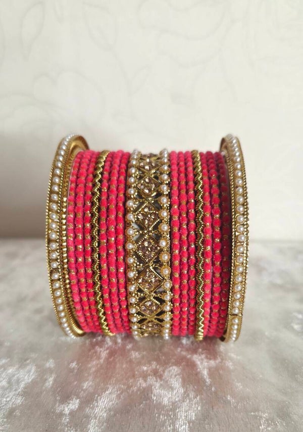 Velvet Chooriya set - Hotpink