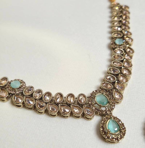 Een licht gewichte set dat bestaat uit: Oorbellen, Maang teeka en Ketting.